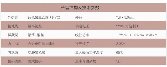 18.5W/m雙導不可裁(TXLP)發熱電纜規格一覽表